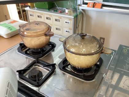 みんなで調理実習をすることができないので、先生が炊いている様子を全体で観察しました。透明の鍋なので、炊き上がっていく様子を詳しく見ることができました。