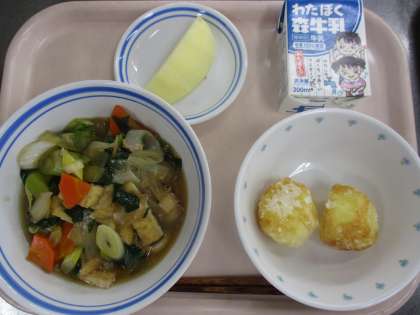 12月9日 鶏南蛮うどん じゃがまる りんご 牛乳