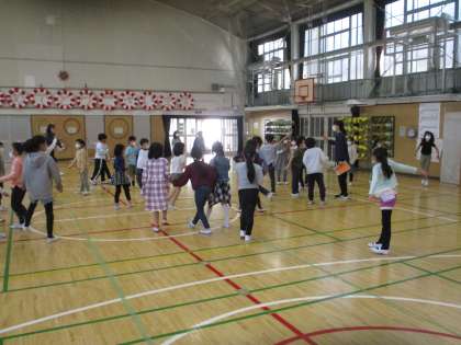 ゲームでは、皆で協力して楽しくグループ作りができました。声を掛け合う様子が素敵でした。また、ダンスでは、大好きな「全校ダンス」を心を一つに元気よく踊りました。子供たちの笑顔が見られました。