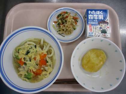 4月14日 かきたまうどん いももち ハリハリ漬け 牛乳