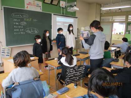 今朝はリモートで体育朝会を行いました。6年生の体育委員が「きをつけ」「前へならえ」「やすめ」「回れ右」「体育座り」の正しい形を教えてくれました。教室で見ていた子どもたちも、実際に自分達で練習していました。
