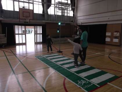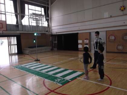 今日は1年生が全員で交流をかねて交通安全教室に参加しました。