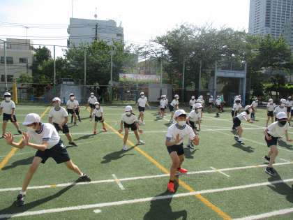 6年生の表現運動は、今まで体育の学習で学んできた成果を全て発揮できるよう、前向きに練習に取り組んでいます。本番を楽しみにしていてください。