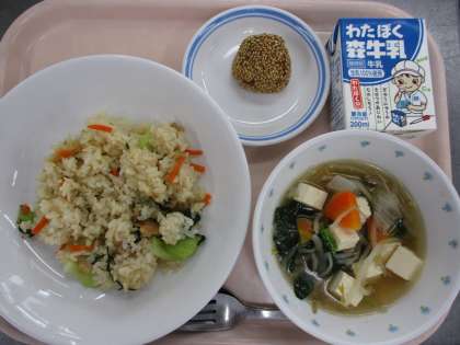 6月3日 中華菜飯 中華スープ ごまだんご 牛乳