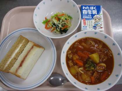 6月15日 二色サンド トマトシチュー 切干大根のサラダ 牛乳