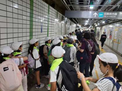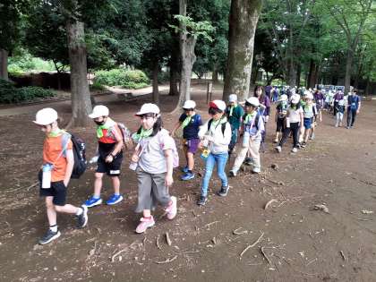 遊び終わって、駒沢公園をあとにしました。帰り道、みんなくたびれ果ててましたが、頑張って歩きました。無事に学校に到着しました。