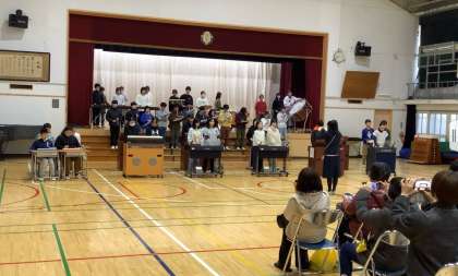 今朝は6年生による音楽発表がありました。来週にせまる6年生を送る会で演奏する曲を、本日は保護者の皆様に一足早くお聴きいただきました。