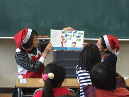 なんと!おふたりのお母さんが、サンタさんに変身して掛け合いで読んでくださいました。