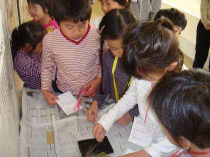 4月26日(火)、1年生は2年生と学校たんけんをしました。ほけんしつや校長室、理科室やかだんなど、6つのポイントをまわります。ポイントでは、首にかけたパスポートにスタンプをおしてこなければなりません。「まいごにならないかな。」「わかるかなあ。」とちょっと心配している子も。でもだいじょうぶ。2年生がやさしく教えてくれました。2年生は「ぼくたちも1年生の時、案内してもらったんだよ。」と話してくれました。「そうか。来年はこんどはぼくたちが・・・。」と心おどらせる1年生です。