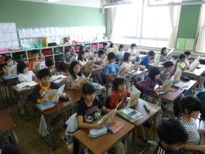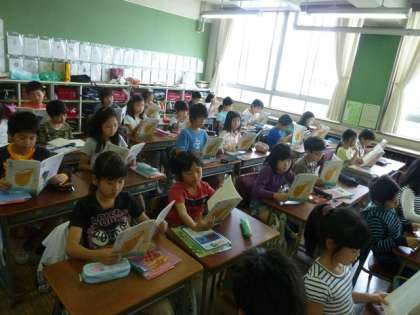 4年生は、教科書を国語の読むときにはきちんと姿勢で読むことができています。よい姿勢で本を読むと眼も悪くなりにくいと言われています。それよりも気持ちが引き締まって気持ちがいいですよね。見事です。