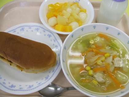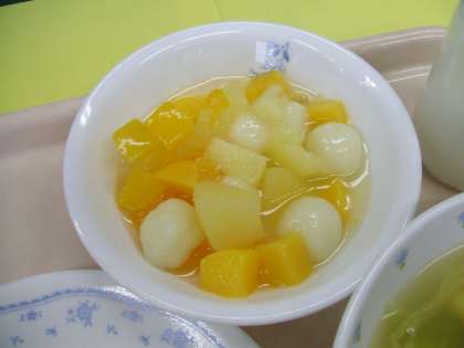 5月11日(水) 公開日 2011/05/13 更新日 2011/05/13 給食 今日のデザートは、フルーツ白玉です。 白玉団子は、何からできているのでしょう。 1 こむぎこ 2 もちごめ 3 とうふ 答えは、2 もち米を粉にしたものが、白玉粉です。 白玉粉を水で練って、茹でると、もちもちの団子ができます。 献立 :カレーミートパン 野菜スープ フルーツ白玉 牛乳 いいね(0)