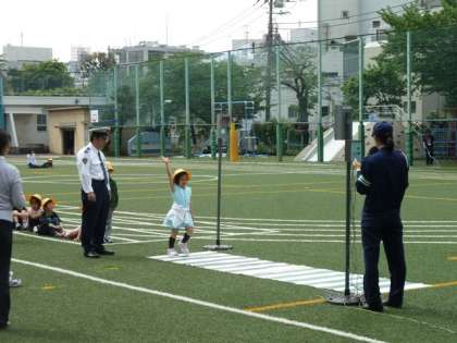 交通安全教室 公開日 2011/05/09 更新日 2011/05/09 今日のできごと 今日は目黒警察署の方をお迎えして、交通安全教室が行われました。横断歩道の渡り方などの説明を聞き、そのあとは実際に信号付きの横断歩道を渡る練習を一人ずつ行いました。1年生はどの子も真剣そのもの、とても立派でした。 いいね(0)