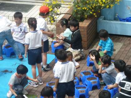 2年生では、生活科でトマトの種を植えました。(苗ではありません)これから一生懸命トマトに愛情を注ぎ、たくさんの実ができるといいですね。