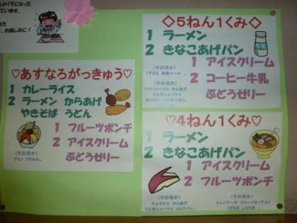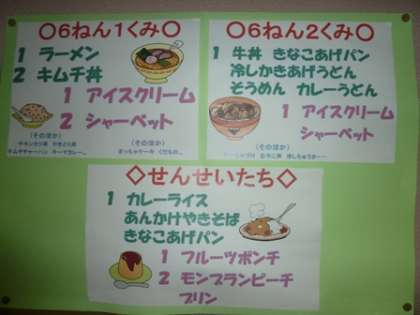 よりより給食をめざして 公開日 2011/06/28 更新日 2011/06/28 今日のできごと 菅刈小学校では、栄養士の鈴木先生を中心に、バランスのいい、子どもたちが喜ぶおいしい給食づくりに取り組んでいます。その1つとして、今年度もリクエスト献立に挑戦します。全クラスで希望を取り、それを生かしていきます。さあ、クラスの意見がいつ実現されるか楽しみですね。 いいね(0)
