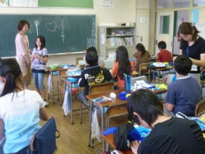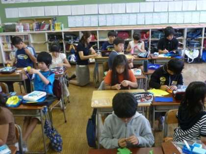 6年生は、家庭科で小物作りに挑戦中です。みんな真剣な表情で、針と糸に格闘中です。
