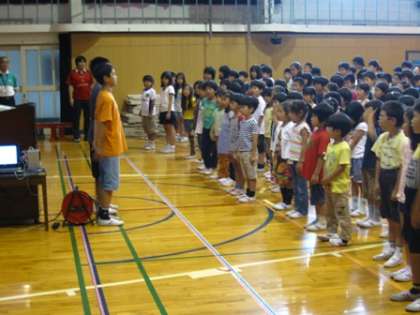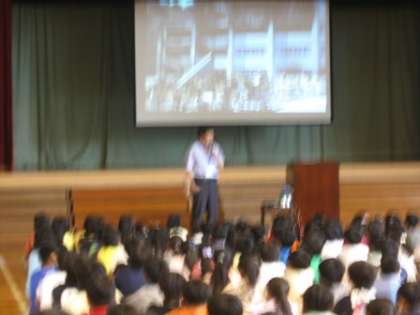 今日は校長先生から、「東日本大震災」について写真と映像を使って、お話がありました。