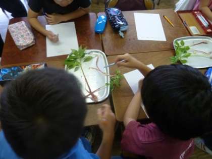 3年生は、ほうせんかの葉、茎、根の様子を観察しています。いったいほうせんかが育つしくみは、どのようになっているのでしょうか??子どもたちは興味津々です。