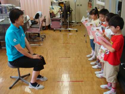 保健の先生、栄養士の先生、主事さん・・・。知っている先生とはいえ、大人の人に聞いてもらうのは、けっこうドキドキするようです。でも、班ごとに読む姿は真剣そのもの!読み終わって、「音読カード」にサインをもらって、大満足!の1時間でした。