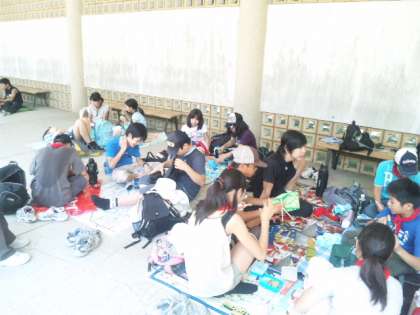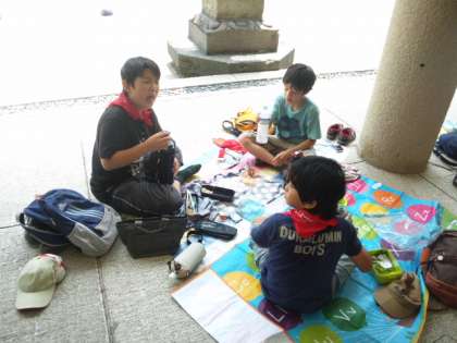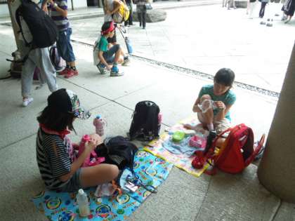 大仏の背中を見ながらお弁当タイム。元気を充電して午後の行動へ。