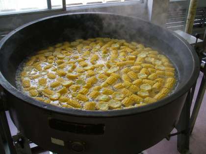 ぜんぶで70本のとうもろこしをむきました。