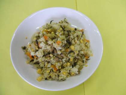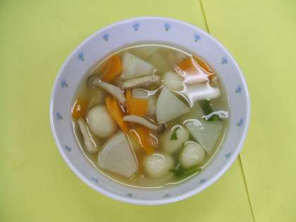 献立 :高菜チャーハン 豆腐団子スープ 梨 牛乳