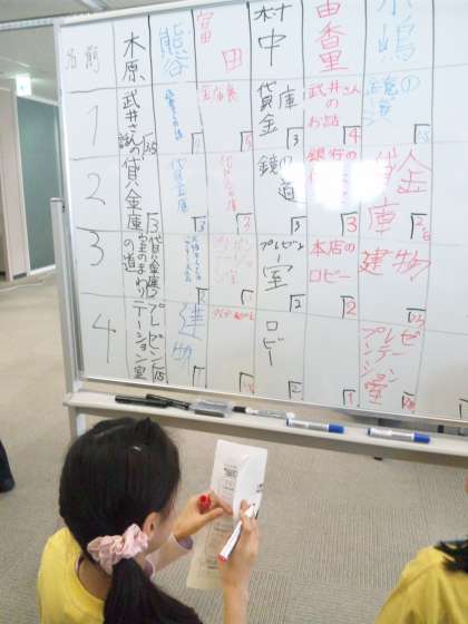 「プレゼンの準備をしよう」 勉強してきたことのまとめに入ります。まずは印象に残ったことを四つ選び点数をつけて集計です。