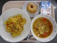 12月23日 五目チャーハン 白菜と肉団子のスープ りんご 牛乳