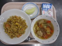 12月23日 五目チャーハン 白菜と肉団子のスープ りんご 牛乳