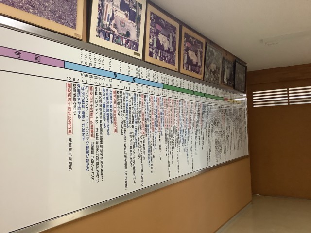 保健室前にあるパネルには、碑小学校の歴史が書いてあります。