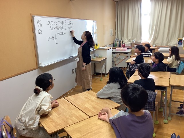 10月10日【4年生】算数 公開日 2025/10/10 更新日 2025/10/10 校長日記 「概数」の学習です。四捨五入、切り上げ、切り捨て、上から1けた、何の位までの概数…。結構ややこしいところです。頑張って取り組んでいました。 +2 いいね(0)