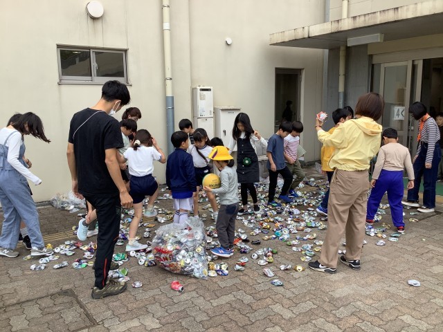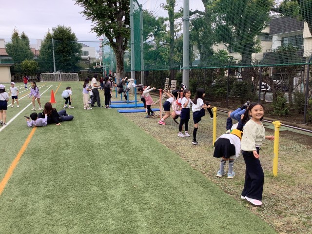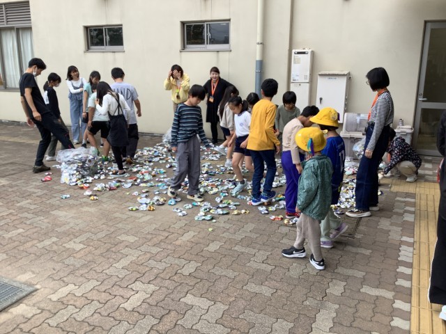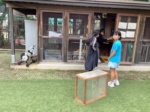 少し冷んやりしますが、遊ぶにはちょうどよいくらいでしょうか。子どもたち元気に遊んでいました。環境美化委員会はボランティアの保護者の方々と一緒にアルミ缶潰し、低学年の子たちも手伝っていました。飼育委員会は亀のお世話。用務主事さんが雨が降って濡れると滑りやすい門の所に滑り止めをつけてくれていました。