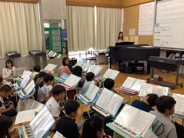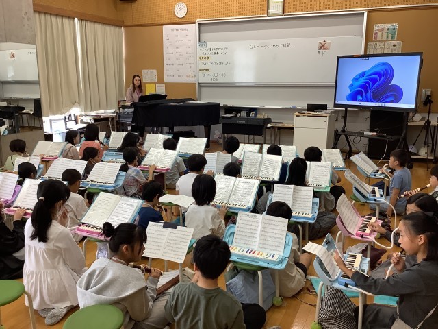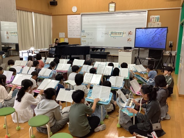 10月21日【5年生】音楽 公開日 2025/10/21 更新日 2025/10/21 校長日記 1月に行われる連合音楽会に向けて練習を始めています。まずは全員が鍵盤ハーモニカかリコーダーで練習しています。それ以外の楽器は今まさにオーディション中です。リズムや音を出すタイミングに気をつけて演奏していました。 +2 いいね(0)