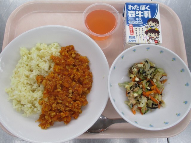 11月5日 給食 公開日 2025/11/05 更新日 2025/11/05 給食 ★こんだて★チリビーンズライス、鉄骨サラダ、アセロラゼリー、牛乳★産地★にんにく(青森)しょうが(高知)たまねぎ(北海道)にんじん(北海道)セロリ(長野)鶏ひき肉(岩手)ひよこ豆(アメリカ)ちりめんじゃこ(愛知)キャベツ(愛知) いいね(0)