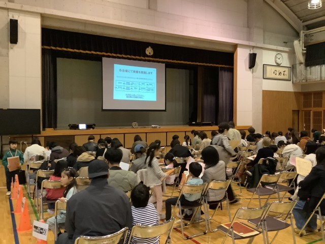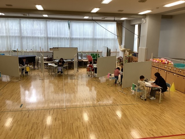 健康診断が始まりました。初めて校舎内に入る子もいるでしょう。ちょっと緊張気味です。