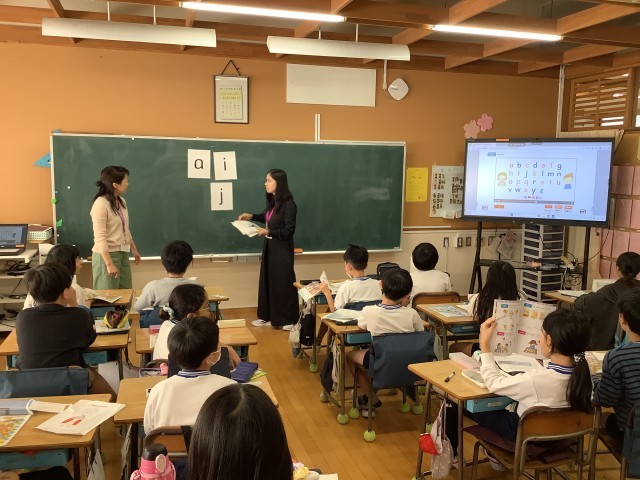 「Alphabet」の小文字の学習です。落ち着いてしっかりと取り組んでいました。