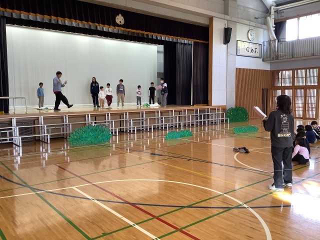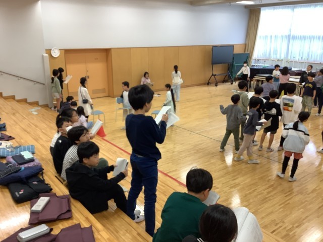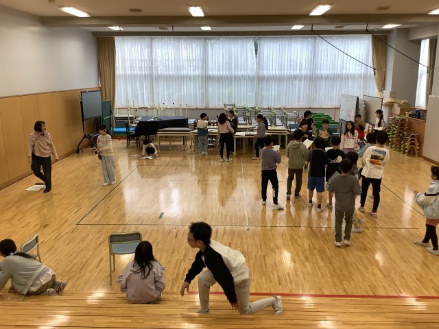 1時間目から体育館では4くみが、くすのきホールでは4年生が学芸会練習に取り組んでいました。まだまだ練習は始まったばかりです。ここからどうなっていくのか楽しみです。