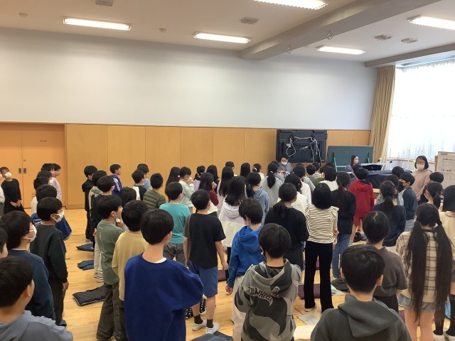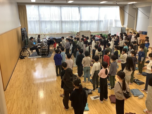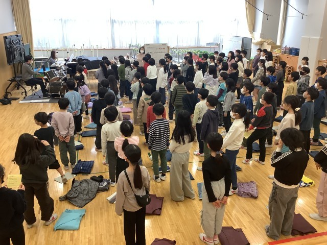 くすのきホールで歌の練習です。この歌は担任と音楽専科で作詞・作曲したそうです。感染予防のためにマスクをしての練習ですが、よく声が出ていました。