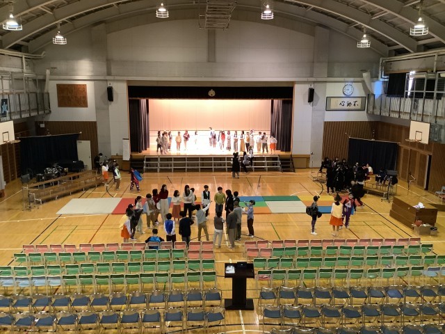 明日のリハーサルに備えて、最後の体育館での練習です。熱のこもった演技が見られました。