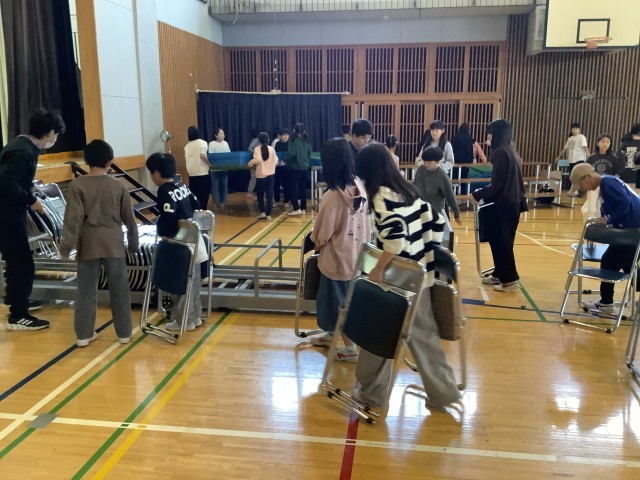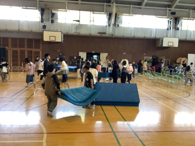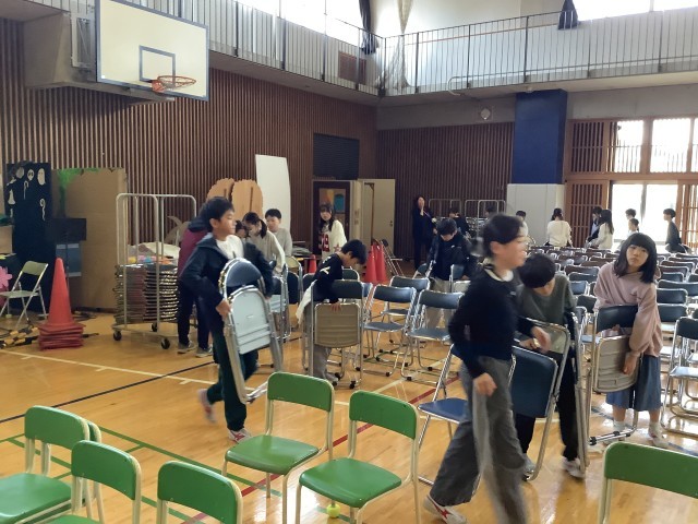 1〜4年生と6年生は給食後下校しました。5年生が体育館の片付けと復旧をしてくれました。今回、準備から係の仕事、後片付けと自分から進んで働く姿勢は高学年として頼もしいかぎりでした。5年生の皆さんありがとうございました。