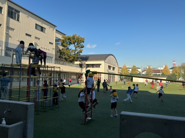 今日は風もなく、陽射しが穏やかです。子どもたち元気に校庭遊びをしていました。