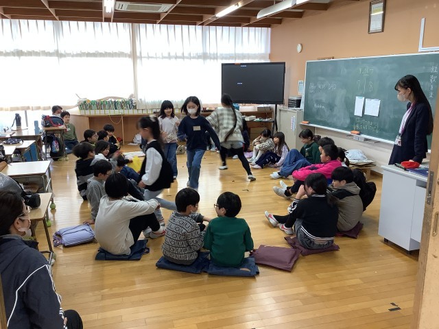 学年を超えてのたてわり班遊びです。6年生がリーダーとして頑張っていました。どんな遊びをするかも場所に応じて6年生が考えています。楽しく交流できたかな。