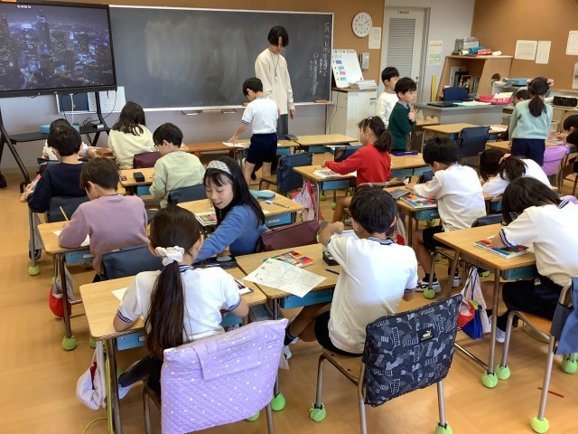 3組は物語の作者になって物語を書いていました。豊かな発想が飛び交っていました。5組は冬休みの思い出を絵日記に書いていました。楽しい冬休みを過ごせたようでした。