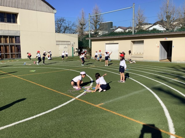 2組、3組は寒さが厳しい中ですが短縄跳びに取り組んでいました。縄跳びカード3・4・5級に挑戦中です。