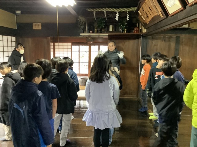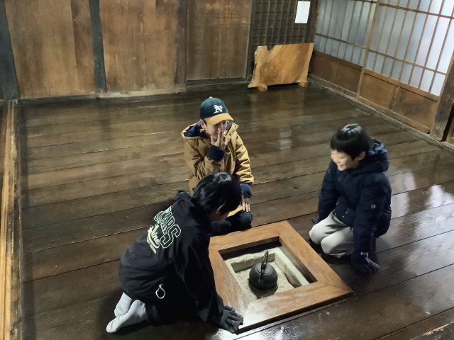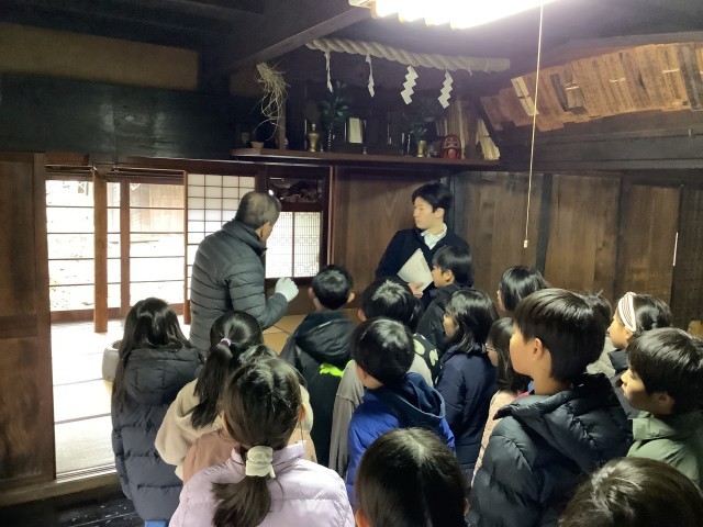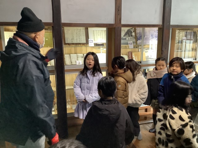 最初に主屋の作りと展示資料を見せてもらいました。子どもたち興味深く見学していました。