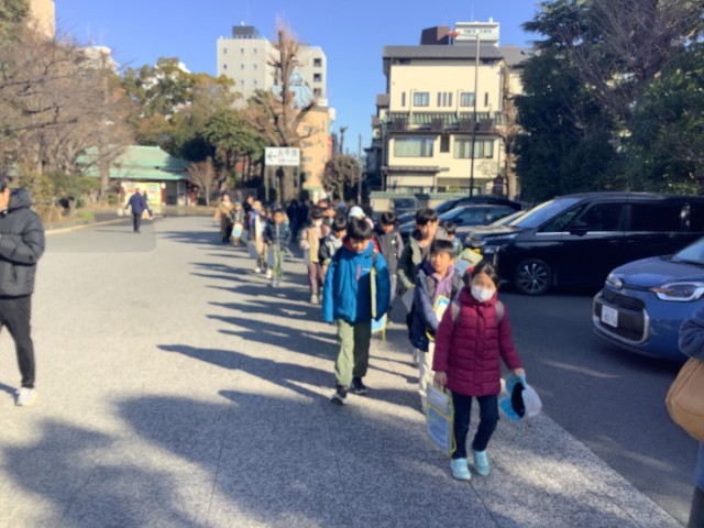 浅草に着きました。まずは集合写真の撮影です。平日ですが人が多いです。