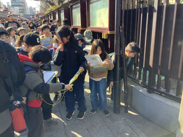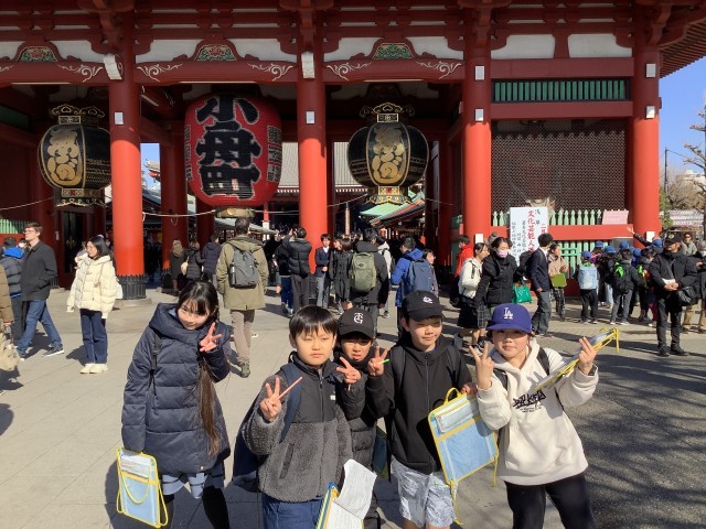 1月30日【4年生】校外学習 公開日 2026/01/30 更新日 2026/01/30 校長日記 浅草では班行動になります。浅草寺の南側、仲見世通り抜けてを雷門、浅草公会堂、伝法院通りをぐるりと回ります。はぐれないように班で声をかけ合っていました。 +7 いいね(0)