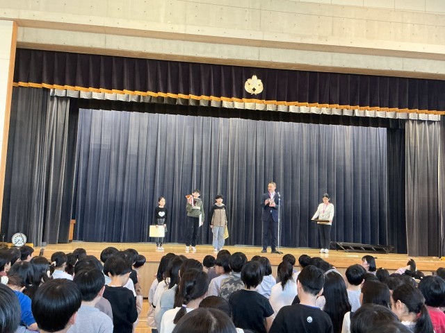 2月2日【全校集会】 公開日 2026/02/02 更新日 2026/02/02 校長日記 今週も表彰がありました。地域のバスケットボールチームと俳句会の佳作、入選、そして読書感想文の表彰でした。タブレット端末の不調で写真が1枚しかアップできません。ご理解くださいm(_ _)m いいね(0)