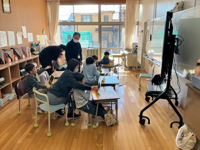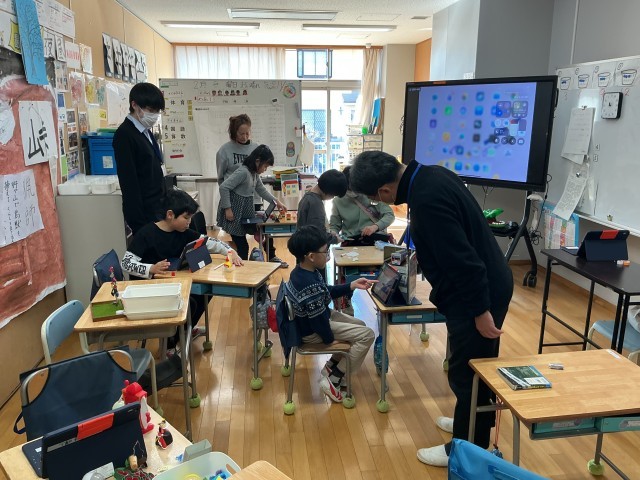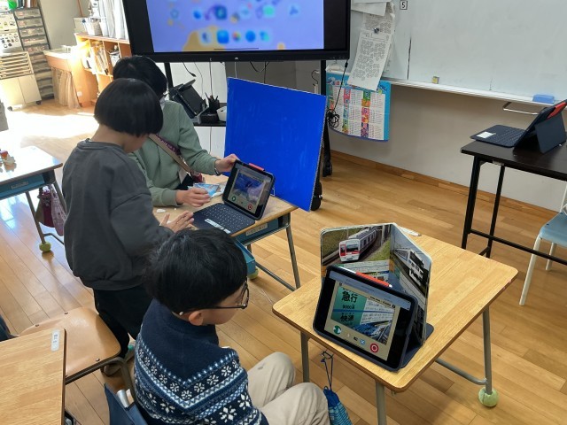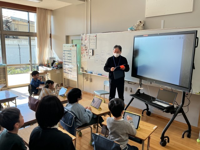 Cクラスはタブレット端末を使って「コマ送り動画」を作っていました。なかなかおもしろ動画でした。Bクラスはスライド作り。GIGA支援員の先生のお話をよく聞いて取り組んでいました。