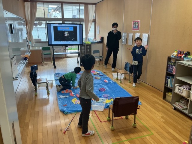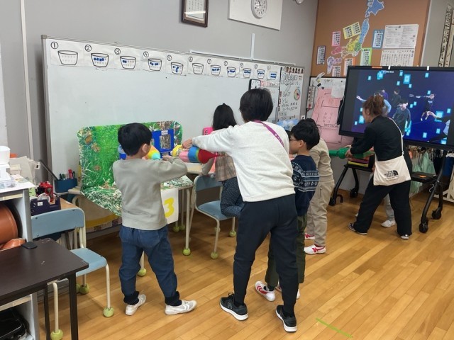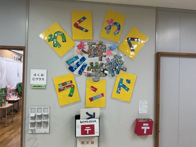 明日は学校公開日です。明日の碑フェスタに向けて校内も準備が進んでいます。4くみはリハーサルをしていました。