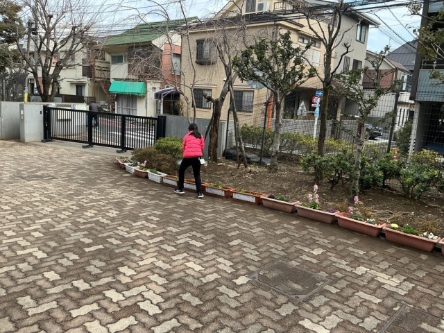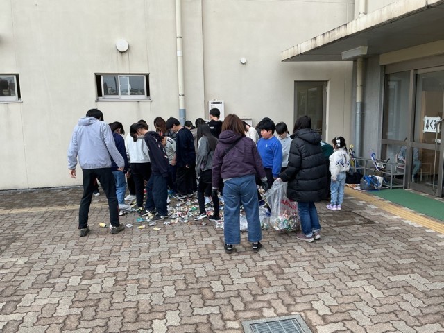 早朝の雨も上がり、子どもたち元気に外遊びをしていました。栽培委員はお花に水やり、環境美化委員はPTA厚生部のお母さん方とアルミ缶潰しをしていました。